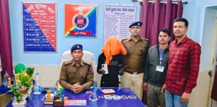 आरपीएफ इंस्पेक्टर कुंदन कुमार ने बताया कि शुक्रवार की शाम आपरेशन यात्री सुरक्षा के तहत प्लेटफॉर्म पर जांच अभियान चलाया जा रहा था। उसी दौरान प्लेटफॉर्म दो पर एक संदिग्ध युवक को देखा गया। गश्ती टीम को देख युवक भागने का प्रयास किया। गश्ती टीम ने युवक को दौड़ कर पकड़ लिया। युवक के पास से एंड्रॉइड सेल फोन-02, चांदी की पायल-02 सेट, आर्टिफिशियल नेकलेस-01, आर्टिफिशियल ईयर रिंग-01 सेट बरामद किया गया। गिरफ्तार युवक राजपुर थाना क्षेत्र के मगरांव गांव के मुन्ना मुशहर का महावीर मुशहर है। गिरफ्तार आरोपी को कानूनी कार्रवाई के लिए जीआरपी को सौंप दिया गया।