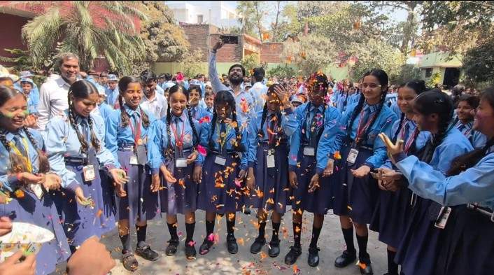 बच्चों ने गुलाल और पुष्पवर्षा कर मनाया होली मिलन समारोह, दिया समरसता का संदेश